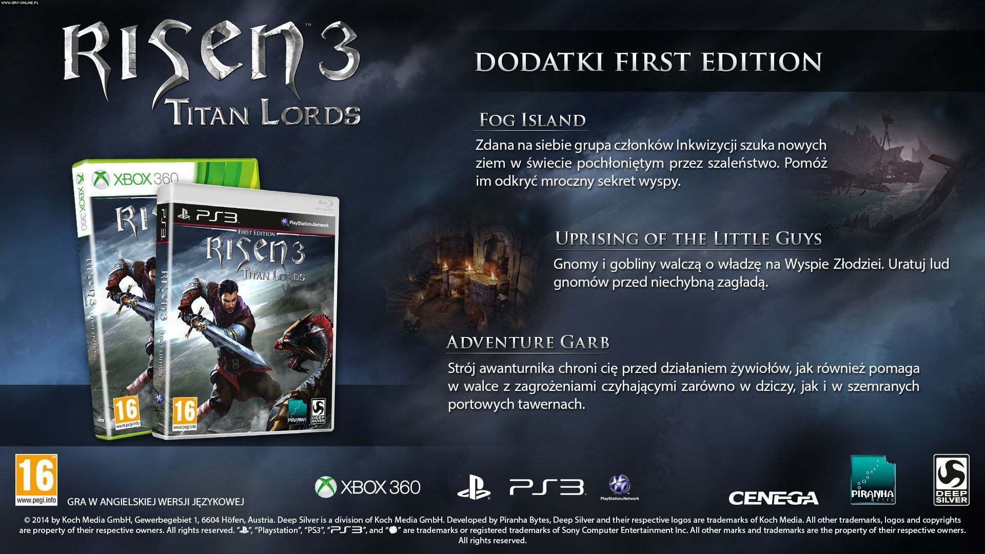 Natomiast firma Cenega ujawniła zawartość standardowego wydania gry Risen 3: Władcy Tytanów, w wersji na pecety oraz konsole Xbox 360 i PlayStation 3. Okazuje się, że poza samą grą na nabywców czekają dodatkowe atrakcje.