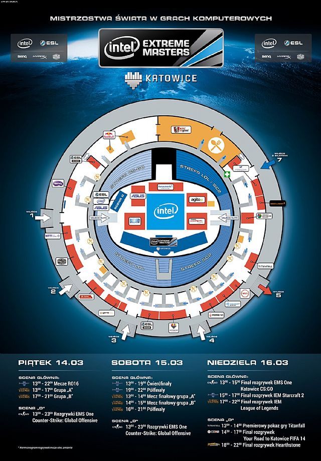 Organizatorzy Intel Extreme Masters Katowice udostępnili szczegółowy plan imprezy. Zabawa odbędzie się w dniach 14-16 marca w katowickim spodku. W trakcie tych trzech dni rozegrane zostaną turnieje turnieje League of Legends, StarCraft II: Heart of the Swarm, Hearthstone: Heroes of Warcraft oraz Counter-Strike: Global Offensive. Dużą atrakcją powinien okazać się także konkurs cosplayowy.