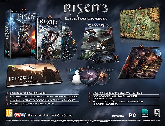 Firma Cenega poinformowała, że poza wydaniem standardowym gry Risen 3: Władcy tytanów szykowane są także dwie wersje specjalne w postaci Edycji Kolekcjonerskiej oraz Edycji Władcy Cienia. Niestety, obie dostępne będą wyłącznie dla posiadaczy pecetów, podczas gdy użytkownicy konsol będą musieli obejść się smakiem.