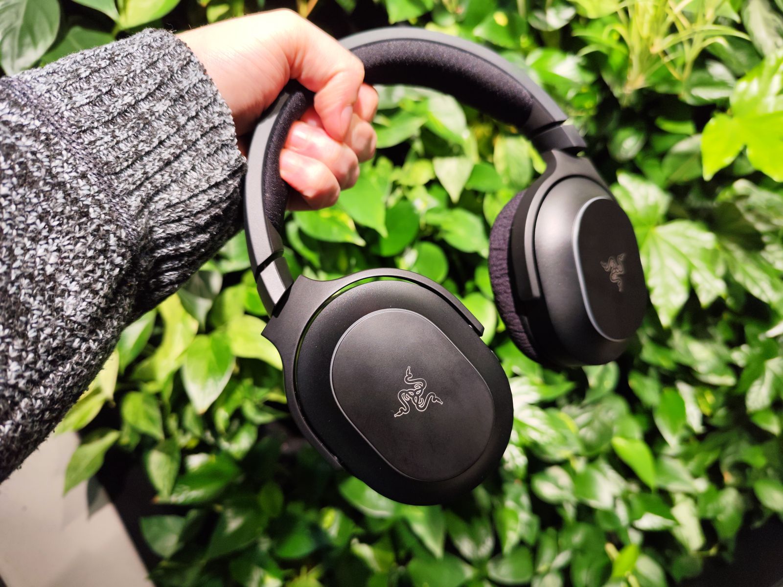 Słuchawki są wykonane z miłego w dotyku plastiku. Wyglądają solidnie, nic nie strzela ani nie skrzypi. Konstrukcja zapewnia sporą wytrzymałość przy codziennym użytkowaniu. Co pierwsze rzuciło mi się w oczy, to że na obudowie zabrakło wejścia 3,5 mm. To może być sporą wadą dla niektórych graczy, którzy doceniają klasyczne, przewodowe rozwiązania. Widać, że tutaj Razer w całości skupia się na bezprzewodowym przesyłaniu dźwięku. Znalazł się natomiast przycisk do zmiany stylów odtwarzanych dźwięków, który służy także do przełączania pomiędzy trybem Razer HyperSpeed i Bluetooth.