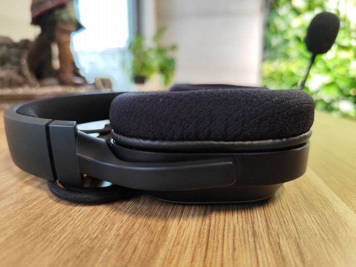 Pałąk jest dosyć sztywny i obawiałem się, że będzie uciskał głowę. Na szczęście bardzo miękkie oraz wygłuszające słuchawki wykonane z oddychającej pianki memory równoważą nacisk. Dzięki temu nie odczuwałem dyskomfortu bez względu na ilość czasu, jaki spędzałem z nimi na głowie.