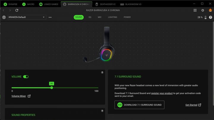Razer oferuje także dodatkowe możliwości w kwestii dźwięku – aby móc korzystać z 7.1 Surround Sound trzeba zarejestrować swoje słuchawki. Otrzymamy wówczas specjalny kod do aktywacji funkcji i pobrania osobnego programu.