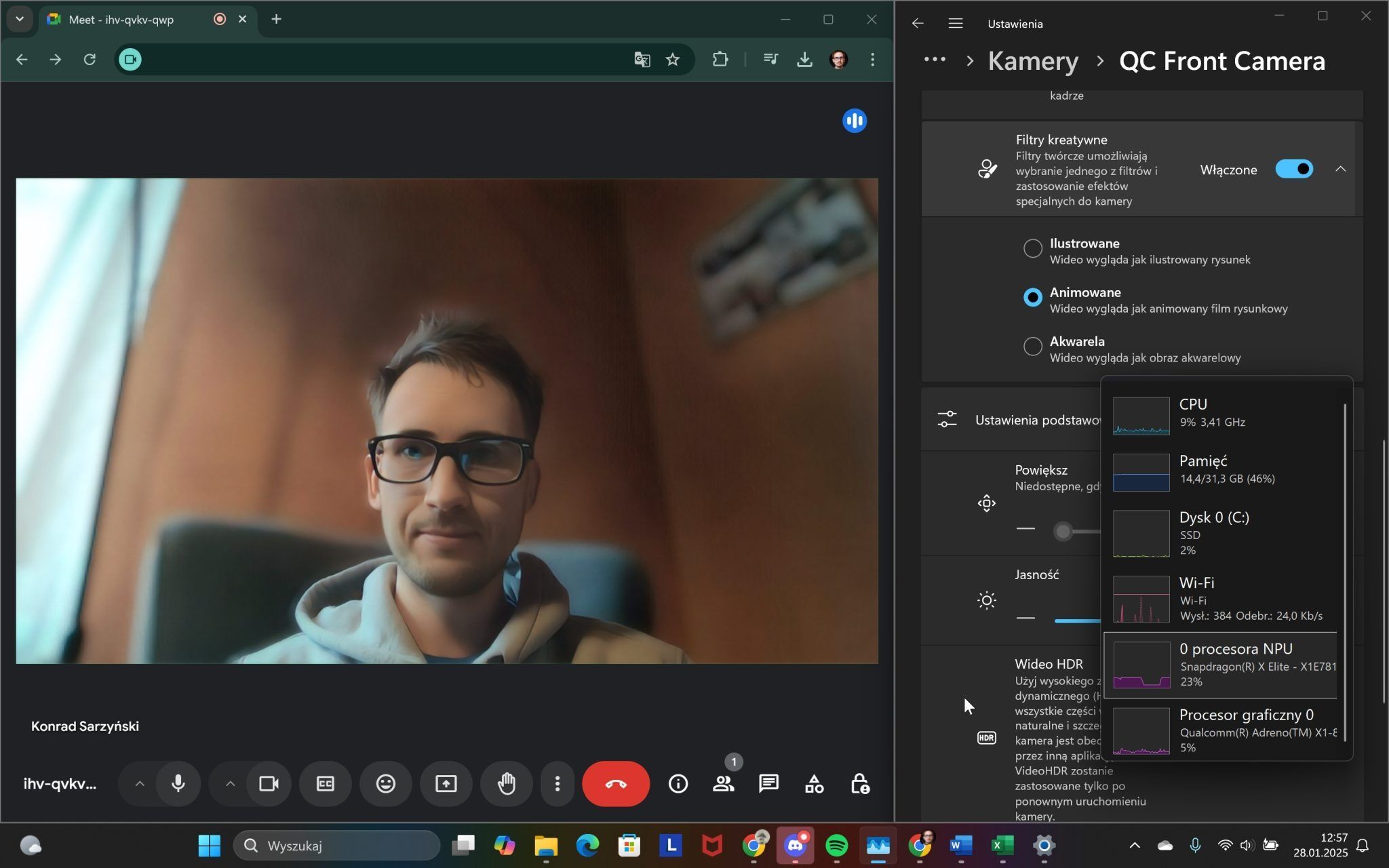 Podobnie kwestia ma się z obsługą kamery – NPU umożliwia podobno znacznie lepsze i efektywniejsze energetycznie zarządzanie obrazem, w tym wycinanie czy zamazywanie tła. Faktycznie działa i pewnie daje dodatkowe minuty działania sprzętu, jednak zdecydowanie nie jest to rewolucja, dla której specjalnie wybrałbym sprzęt z NPU.