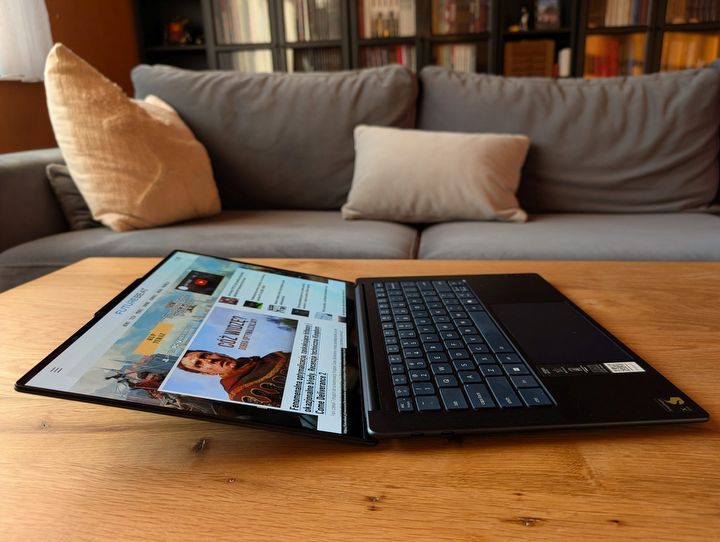 Producent w przypadku tego modelu przyłożył się do ekranu – otrzymujemy świetny dotykowy OLED o rozdzielczości 2944 na 1840 pikseli (3K) i przekątnej 14,5”. Daje to bardzo komfortowe warunki pracy, obraz jest ostry i odpowiednio duży, by dało się wygodnie popracować także poza biurem. Również przy mocniejszym oświetleniu, dzięki maksymalnej jasności 1000 nitów.