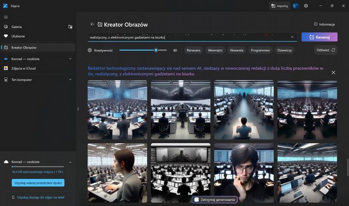 Lokalne generowanie obrazów to fajne narzędzie, choć raczej z gatunku umiarkowanie przydatnego gadżetu, który docenią nieliczni.Źródło: aplikacja Zdjęcia.