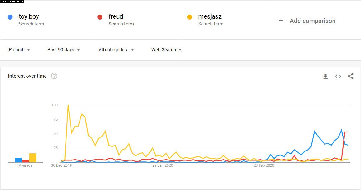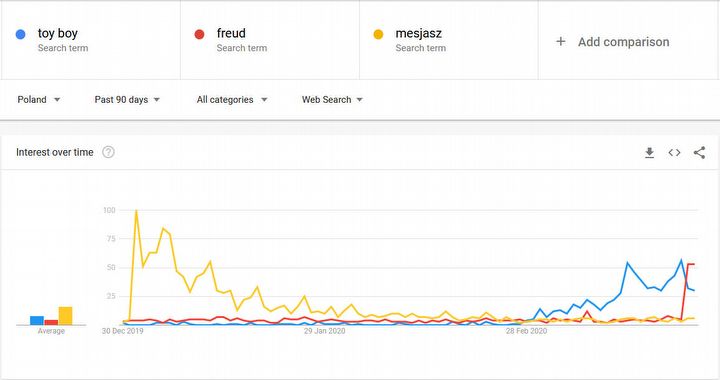 Dodatkowym sygnałem mogącym wskazywać na popularność obu seriali jest widoczny wzrost tytułowych fraz w zestawieniu z netfliksowym hitem stycznia – Mesjaszem (porównanie możecie zobaczyć na poniższej grafice z Google Trends).