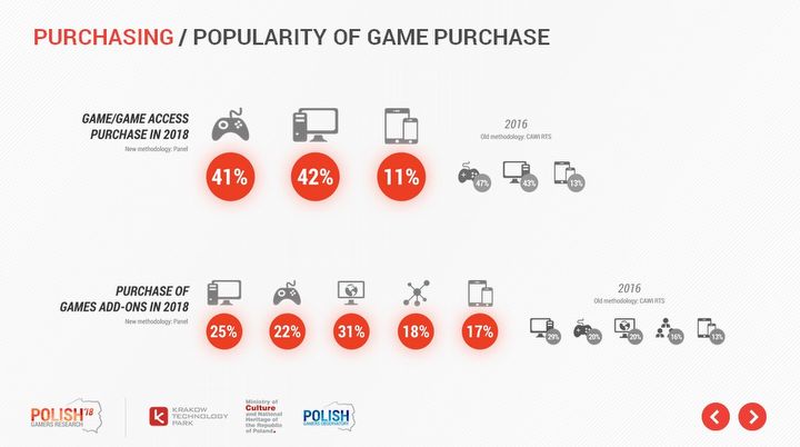 Co ze wspomnianymi powyżej dodatkami? Badacze przybrali tu szerokie kryterium, bo jako „add-on” najpewniej traktowane są tu rzeczy od wielkich rozszerzeń po mniejsze DLC, dodatki kosmetyczne, zakupy waluty i wszystko, co nie jest samą grą, a da się do niej dokupić. „Coś więcej” dokupuje 25% komputerowców i 22% konsolowców. Pod odsetkami dotyczącymi gier w przeglądarce (31%), mobilnych (17%) i społecznościowych (18%) najpewniej kryją się zaś różnorodne metody pieniężnego wspomagania twórców, często dalsze od klasycznego rozumienia terminu. Koniec końców, nabywcy add-onów są mniejszością.