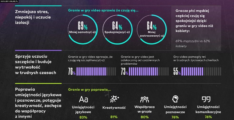 Z okazji Światowego Dnia Zdrowia Psychicznego ogłoszono wyniki badania przeprowadzonego wśród graczy. Pokazują one pozytywny wpływ gier na samopoczucie oraz więzi społeczne i stan emocjonalny.
