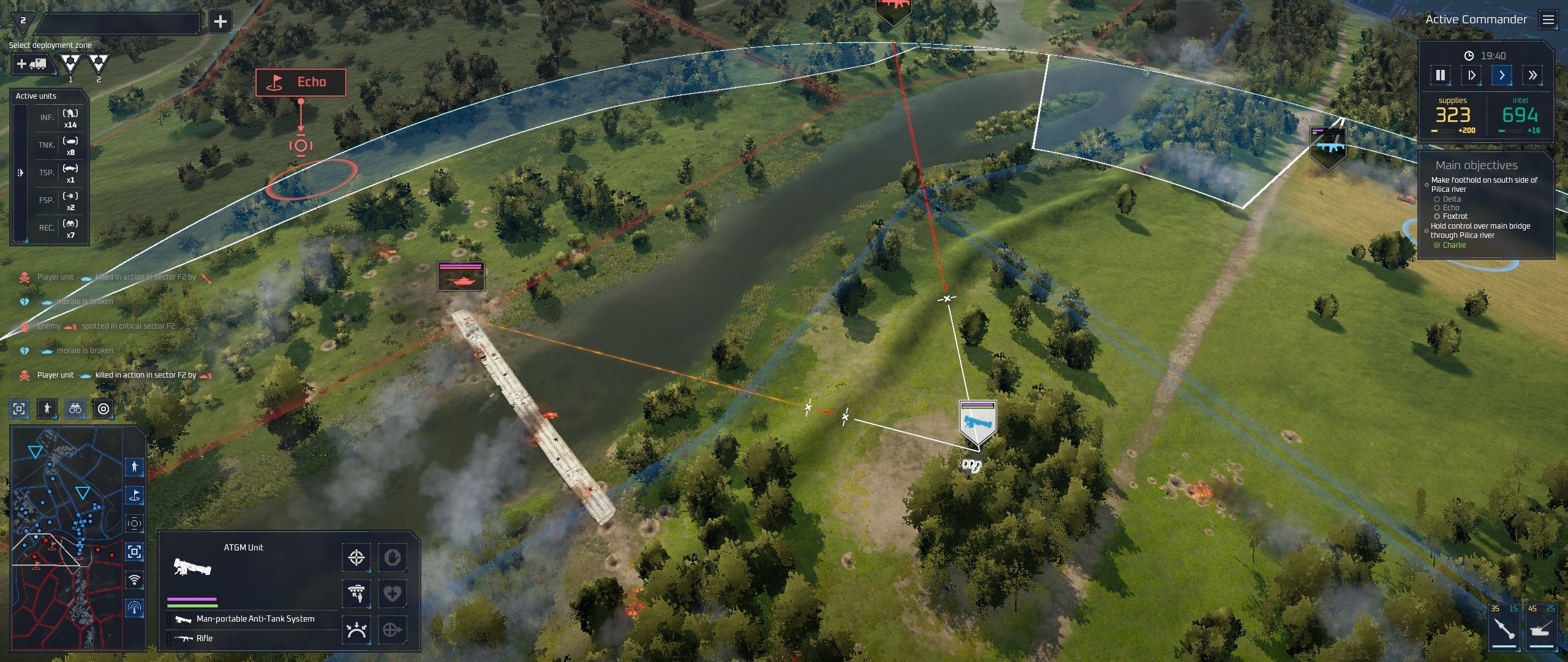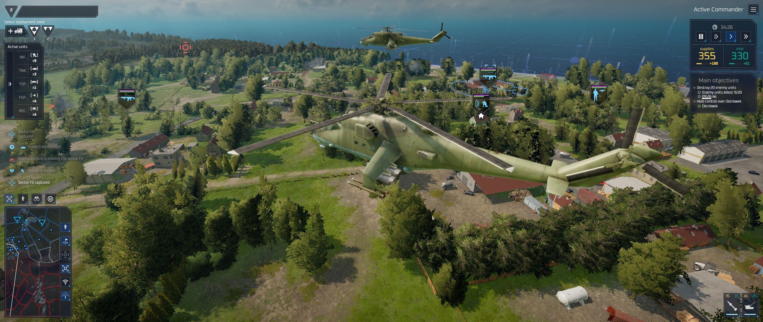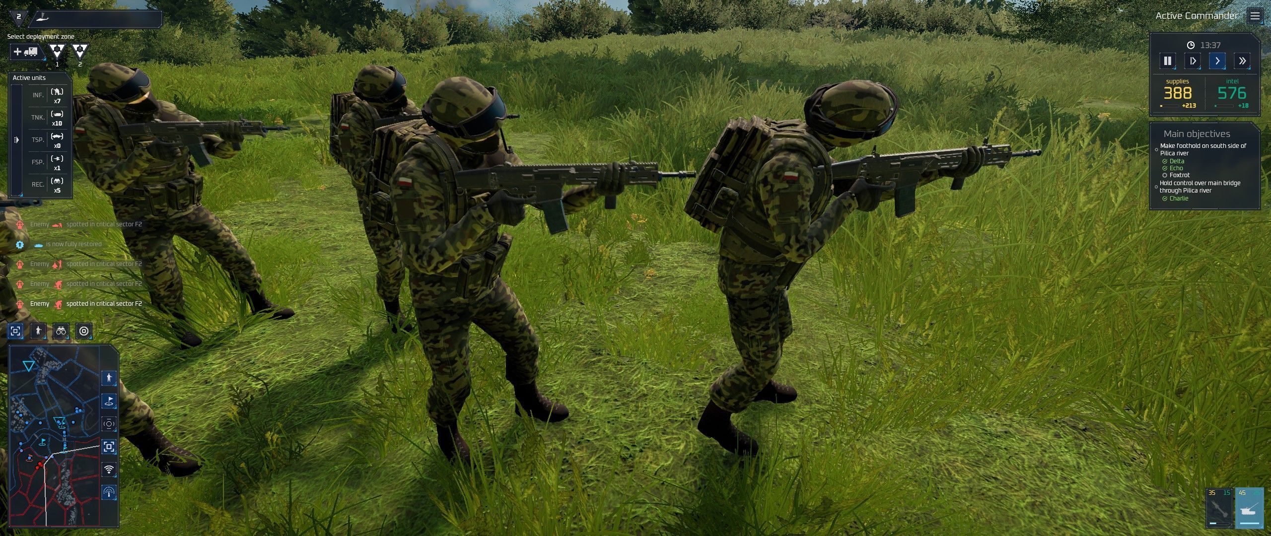 Skutkuje to tym, że w praktyce malujemy mapę taktyczną, przejmując zarówno istotne lokacje, jak i puste pola, które największe znaczenie taktyczne mają prawdopodobnie dla pasących się tam krów. Im więcej sektorów posiadamy, tym większy jest przychód punktów zaopatrzenia, za które kupujemy jednostki. Intel to kolejny zasób, pozwalający przyzywać lub usprawniać „ciężarówki-bazy”, który zdobywamy za wykrywanie jednostek wroga, zakłócanie jednostek walki elektronicznej, niszczenie zwiadu lub używanie dronów. Obszary w terenie zabudowanym mogą zajmować tylko jednostki piechoty, co zmusza gracza do przemyślanego tworzenia zgrupowań i w teorii uniemożliwia spamowanie wyłącznie wojskami pancernymi. Ostatecznie jednak i tak wygrałem bitwę dwa razy, tworząc gigantyczną pancerną masę.
