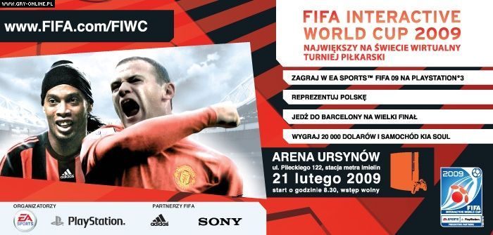 W sobotę po raz drugi odbędą się polskie eliminacje do prestiżowego turnieju w grę FIFA 09 na PLAYSTATION®3. Podczas tegorocznej edycji FIFA Interactive World Cup 2009 nie zabraknie sportowych atrakcji z najwyższej półki. Arenę Ursynów odwiedzą znane i wybitne osoby ze świata sportu. Wydarzeniem, na które czekają fani piłki nożnej jest mecz on-line w FIFA 09 na PLAYSTATION 3 między dwiema polskimi drużynami piłkarskimi – Legią Warszawa oraz Lechem Poznań. Mecz zostanie rozegrany w rodzimych miastach obu zespołów. Lechici zasiadając w sali poznańskiego Multikina (ul. Królowej Jadwigi 51) i poprowadzą swoich zawodników przeciwko drużynie Legii Warszawa, która zasiądzie na scenie w Arenie Ursynów. Walkę komentować będzie Dariusz Szpakowski. Kibice piłkarscy zobaczą na żywo idoli i zdobędą ich autografy, a nawet zrobią sobie z nimi zdjęcie.