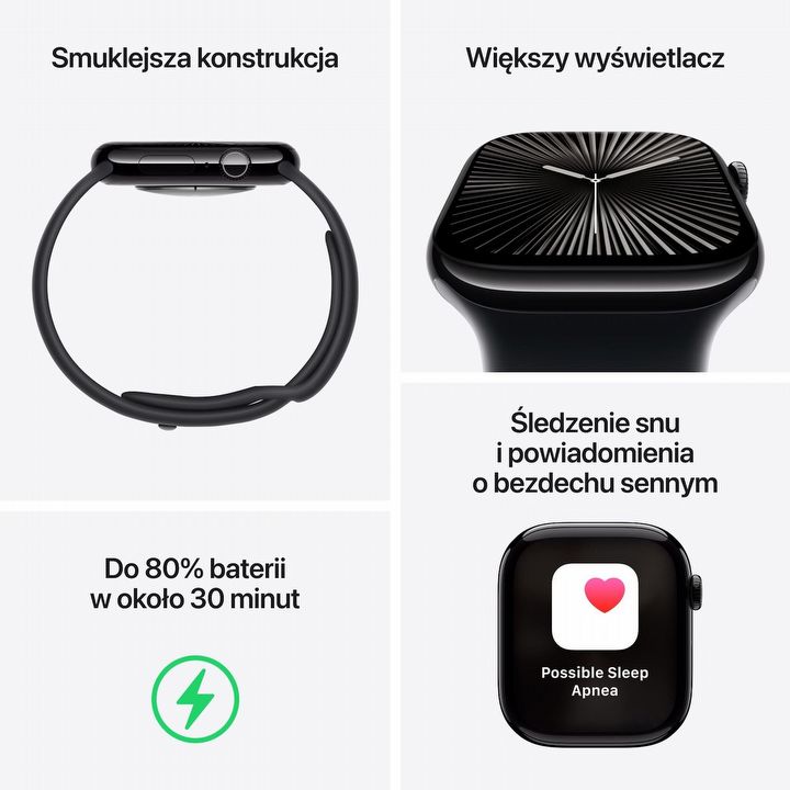 Apple Watch 10 sprawdzi się również podczas treningów – monitoruje aktywność fizyczną, analizuje dane i potrafi motywować do regularnego ruchu. Dla niektórych minusem może być czas pracy na baterii wynoszący do 36 godzin w trybie niskiego zużycia energii. Z drugiej strony urządzenie ładuje się stosunkowo szybko, więc w praktyce wystarczy choćby krótka przerwa – na przykład podczas prysznica – aby ponownie znacząco podładować baterię.