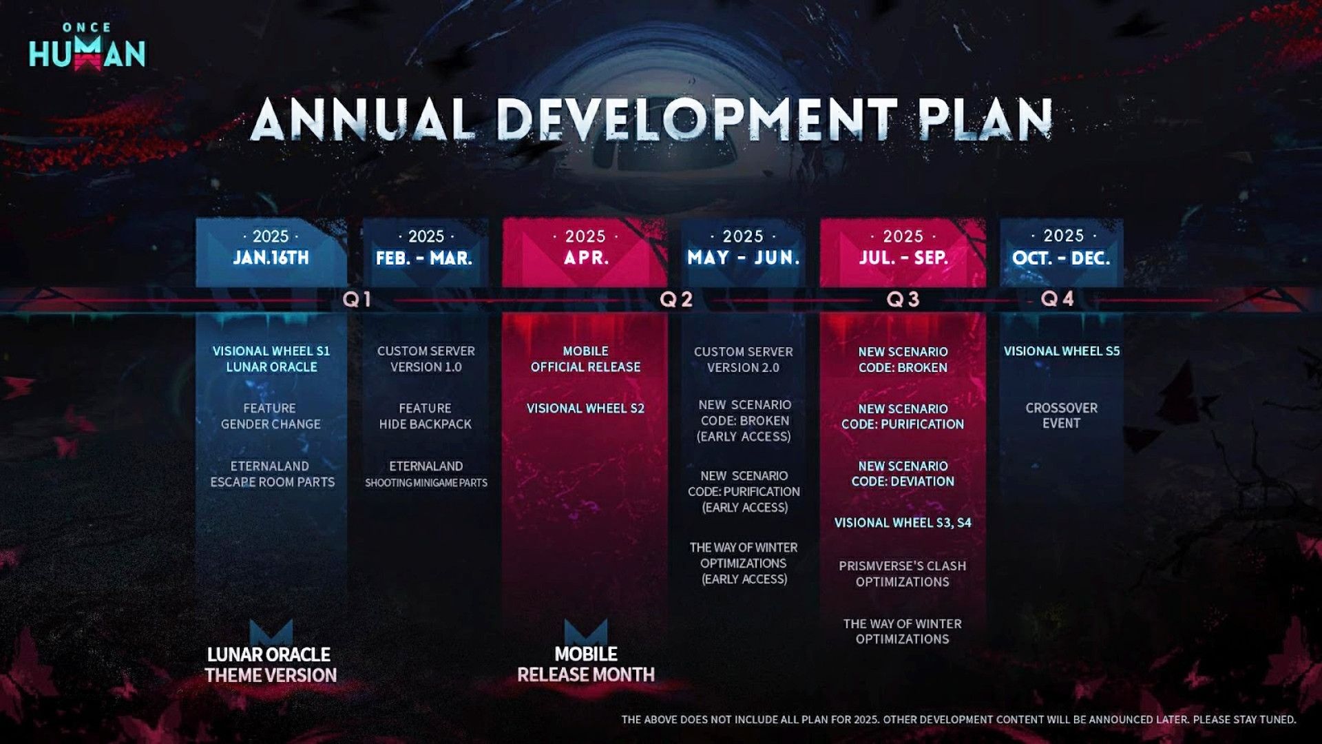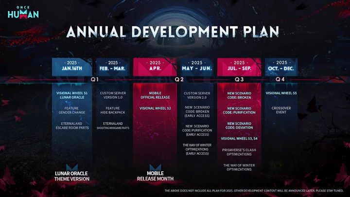 W tym samym czasie pojawi się też druga odsłona systemu Visional Wheel, a zaraz po niej – w maju i czerwcu – trzy nowe scenariusze (o roboczych nazwach „Broken”, „Purification” i „Deviation”). Te na początku będą jednak funkcjonowały w grze tylko w ramach wczesnego dostępu, żeby na stałe zagościć w Once Human pomiędzy lipcem a wrześniem.