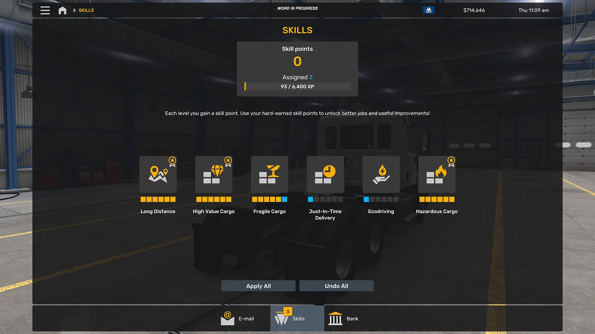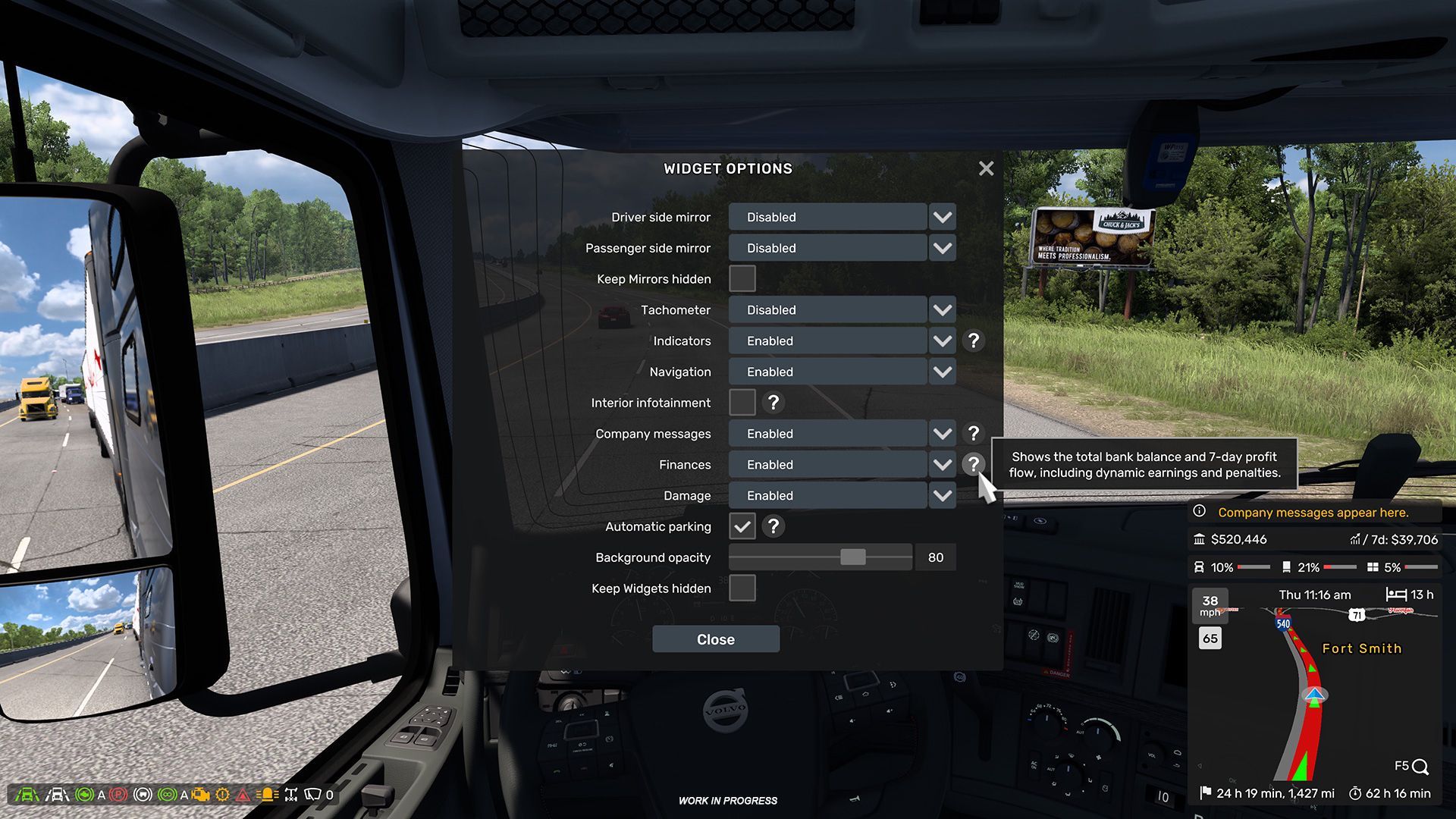 Ponadto twórcy wzięli sobie do serca uwagi społeczności dotyczące nowego Route Advisora. Do gry wróciły wyczekiwane widżety finansów oraz uszkodzeń, wyświetlane nad nawigacją GPS. Pozwalają one na bieżąco monitorować stan techniczny ciężarówki i ładunku oraz sprawdzać średni zysk z ostatnich siedmiu dni. Duże zmiany zaszły także w oknie umiejętności, które otrzymało nowoczesny wygląd, czytelniejsze opisy kolejnych poziomów oraz poprawioną nawigację dla osób korzystających z kontrolerów.
