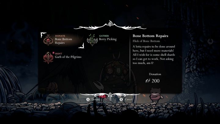 Silksong to metroidvania, więc podczas przemierzania obszarów Pharbloom często natrafiać będziecie na ścieżki, przez które nie będziecie w stanie przejść. Zazwyczaj wymagać będzie to umiejętności, której jeszcze nie posiadacie. Starajcie się pamiętać o tych obszarach i wracajcie do nich po zdobyciu danej umiejętności – kryją się w nich użyteczne nagrody a nawet opcjonalni bossowie. Przejścia takie możecie zaznaczać na mapie, korzystając z przypinek, które możecie kupić od Shakry.