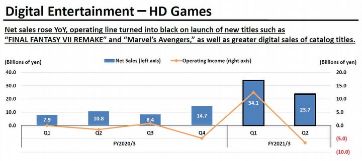 Gry HD to jedna z trzech składowych sekcji w firmie Square Enix, składających się na cały segment rozrywki elektronicznej. Poza grami HD (m.in. Marvel's Avengers, Final Fantasy VII Remake czy Outriders) wyróżnia się tutaj jeszcze gry MMO oraz gry na przeglądarki i urządzania typu Smart.