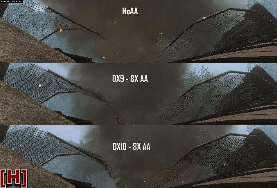 Ostatnią fazą testu było sprawdzenie kilku kluczowych dla gry efektów – jakości przelewanej krwi oraz rozniecanego ognia, ale i rozmycia, wody i trawy. W przypadku pierwszej i drugiej wymienionej cechy, czyli krwi i ognia, sprawa jest prosta – różnic nie odnotowano. Autorzy wyrazili tylko ubolewanie z niewykorzystania przez producenta Soft Particles, efektu dostępnego na DX10. Właściwie różnic brak również w przypadku rozmycia i wody, jednak już trawa okazała się bardziej problematyczna. Okazuje się, że na DX10 zdarza jej znikać i ogólnie jest jej znacznie mniej.