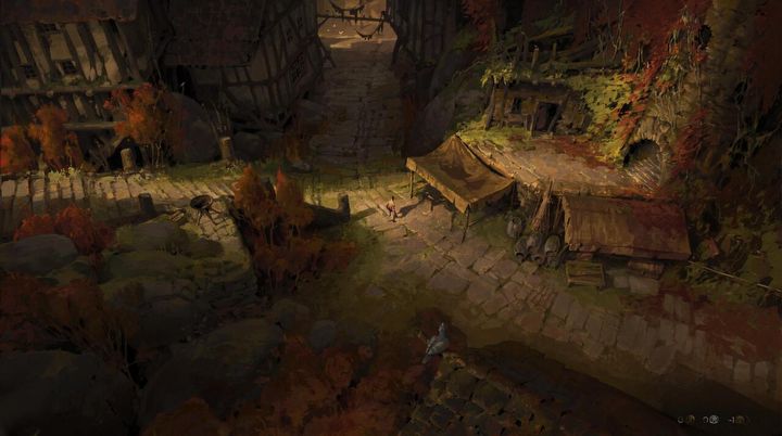 Zaznaczmy, że w mrocznym świecie No Rest for the Wicked znajdzie się chwila na odpoczynek. W mieście Sacrament (poniżej) będziemy mogli zakupić własną posiadłość, a w jej pobliżu wędkować czy uprawiać ziemię.