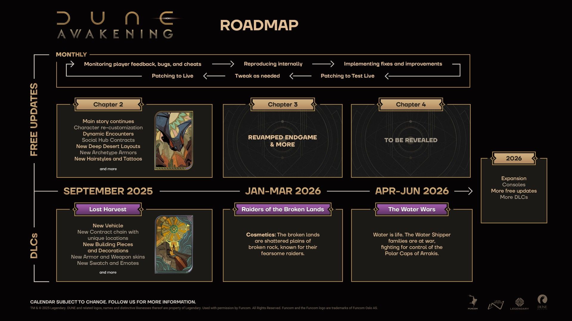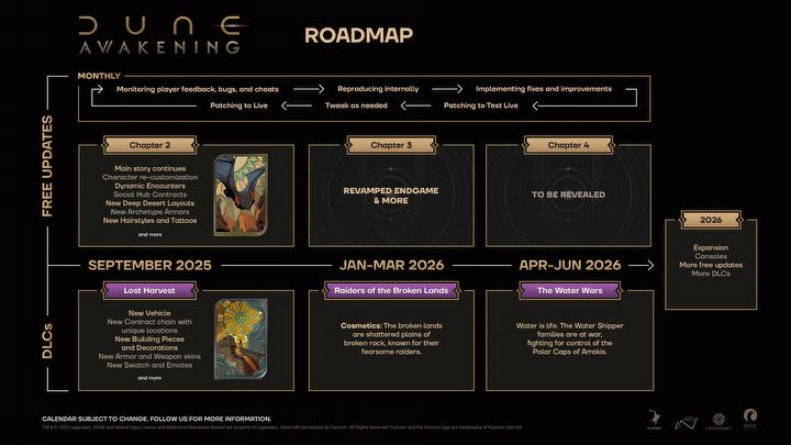 Studio Funcom postanowiło podzielić się informacjami o przyszłości sandboxa Dune: Awakening – twórcy przedstawili najbliższe plany na aktualizacje, jak i orientacyjną datę debiutu dodatku The Lost Harvest oraz kolejnych rozszerzeń. Zdradzili również, jakie elementy pojawią się w fazie endgame’u.