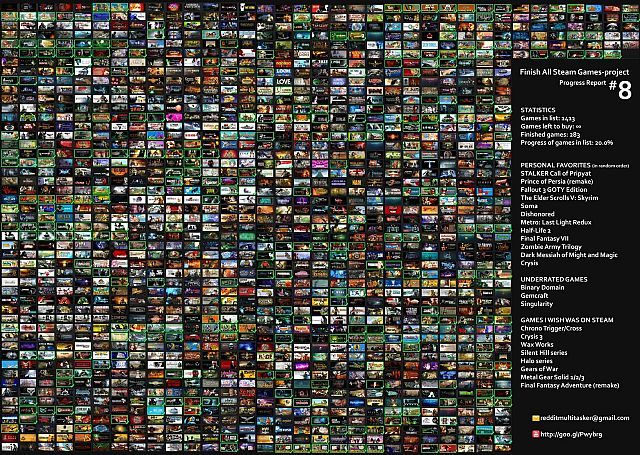 Norweg o nicku Multitasker od 2012 roku stara się dobrnąć do napisów końcowych każdej z pozycji oferowanych na platformie Valve. Swoje postępy publikuje co jakiś czas na Reddicie, gdzie – oprócz prezentowania swojej pokaźnej biblioteki gier i ujawniania statystyk z podjętego wyzwania – dzieli się także ulubionymi produkcjami oraz tytułami, które według niego powinny pojawić się na Steamie. Według ostatniej aktualizacji, Multitasker ukończył już 283 pozycje (nie musicie mu wierzyć na słowo – prowadzi bowiem własny kanał na YouTube, gdzie dokumentuje postępy), co daje zaledwie jedną piątą ze wszystkich posiadanych przez niego produkcji. Sam Norweg raczej dobrze wie, że cel, jaki sobie wyznaczył, jest nieosiągalny – nawet gdyby Valve postanowiło nagle oddelegować wszystkich pracowników odpowiadających za działanie Steama do tworzenia Half-Life'a 3, lista dostępnych w tym momencie tytułów jest zwyczajnie zbyt długa. Mimo to Multitasker ma zamiar próbować do czasu, w którym przestanie czerpać ze swego projektu przyjemność.