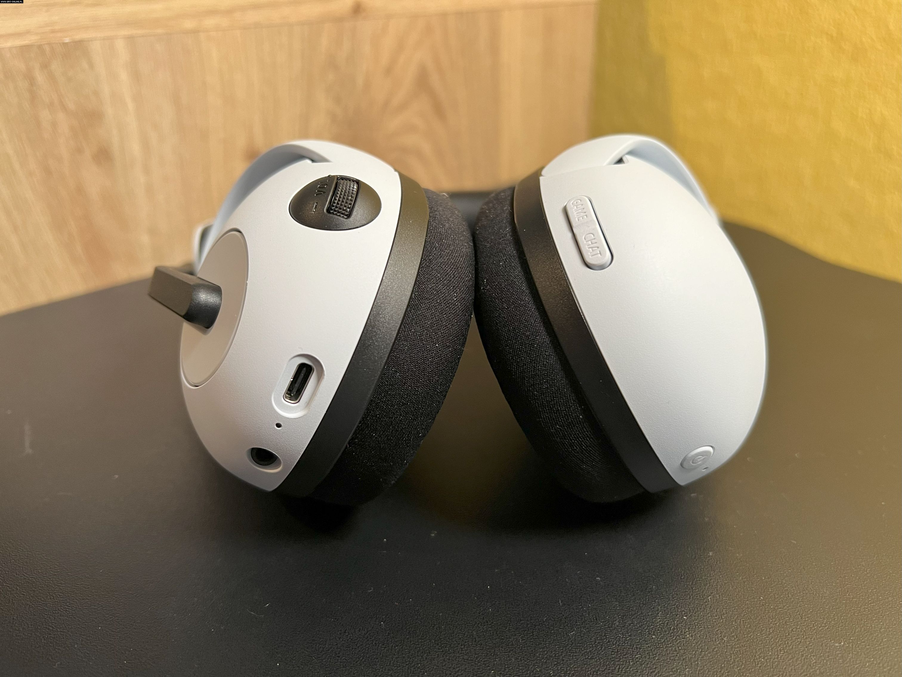 Testowałem biały wariant, który idealnie współgra zarówno z PlayStation 5, jak i oryginalnymi akcesoriami japońskiego producenta, choć pewnie nieco gorzej wpasuje się w klasyczne biurko pececiarza. Ogromną zaletą białych elementów jest ich delikatna chropowatość i matowość, przez co nie zbierały odcisków palców i nie brudziły się w czasie testów. Obudowa sprawia też wrażenie odpornej na drobne ryski wynikające z codziennego użytkowania. Na plus należy również zaliczyć obecność przycisków „GAME” oraz „CHAT”, które umożliwiają zmianę poziomów głośności różnych źródeł, np. gry i znajomych na Discordzie. Przydatne, gdy chcemy chwilowo skupić się na jednym, przyciszając drugie.