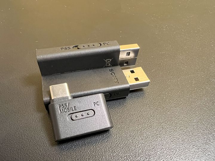 Nadajniki z przełącznikiem trybu PS5/PC to znak rozpoznawczy serii. Niestety są dość duże, co będzie przeszkadzać w przypadku laptopów i urządzeń mobilnych.Źródło: fotografia własna.
