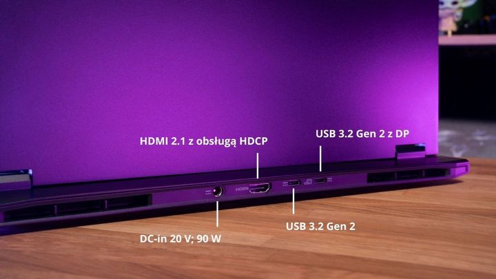 Głównym oknem na świat gier i pracy kreatywnej jest 16-calowy wyświetlacz o rozdzielczości WQXGA (2560 x 1600 pikseli). To panel IPS z proporcjami obrazu 16:10, co daje więcej przestrzeni roboczej w pionie, a to korzystne zarówno podczas przeglądania dokumentów, jak i w niektórych grach. Ekran charakteryzuje się wysoką jasnością, szerokimi kątami widzenia (do 170 stopni) i 100% pokryciem palety kolorów sRGB, gwarantując żywe i dokładne odwzorowanie barw. Sprawdza się on zarówno w pracy kreatywnej oraz gamingu, jak i przy codziennym użytkowaniu, np. oglądaniu filmów.