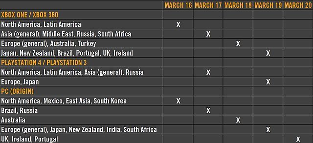 Dzisiaj, tj. 19 marca, uruchomione zostały europejskie, w tym polskie, serwery gry Battlefield: Hardline. Tym samym oficjalnie rozpoczęto sezon multiplayerowych batalii w najnowszej odsłonie niezwykle popularnej serii strzelanin Battlefield w wersji pecetowej oraz na konsole PlayStation 3 i PlayStation 4. Natomiast użytkownicy konsol Xbox 360 i Xbox One możliwość wcielenia się w policjanta lub bandziora otrzymali już wczoraj. Sprawa uruchomienia serwerów w poszczególnych regionach może wprawić w niewielkie zakłopotanie, gdyż zawirowania związane z poszczególnymi krajami i platformami sprzętowymi są dość tajemnicze. Najwcześniej, bo już 16 marca, grali amerykańscy xboksowcy i pecetowcy, natomiast najpóźniej pyknąć przyjdzie graczom pecetowym ze Zjednoczonego Królestwa Wielkiej Brytanii i Irlandii Północnej, Irlandii i Portugalii. Ze szczegółową listą można zapoznać się na poniższej tabeli.