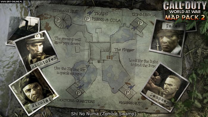 Map Pack 2 zawiera 3 mapy (Banzai, Corrosion, Sub Pens) stworzone z myślą o tradycyjnych trybach rozgrywki. Informacje na ich temat zostały przedstawione na oficjalnej stronie. W zestawie obecna jest też gratka dla miłośników Nazi Zombie, dostępnego po ukończeniu podstawowej wersji gry. Nowa arena nazywa się Shi No Numa (co znaczy: bagno zombie) i została pokazana w dość ciekawym zwiastunie.