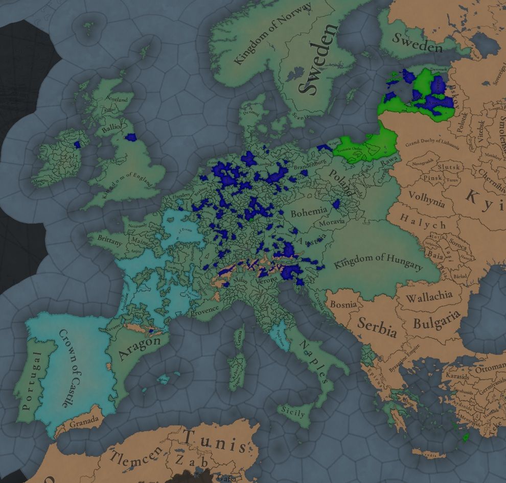 To bynajmniej nie cały świat PC, ani też nie pierwszy raz, gdy twórcy pokazują mapę gry (czy też jej fragment, tu akurat spory). Niemniej raz, że tym razem pokazano większy wycinek niż dotychczas. Dwa, mapa nieco zmieniła się od poprzednich wpisów, co potwierdził Ludi et Historia – youtuber specjalizujący się w grach Paradoxu.