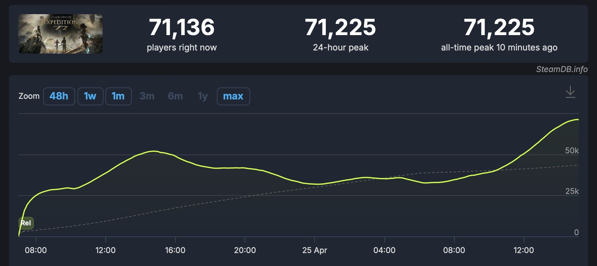 Sukces sprzedażowy Clair Obscur: Expedition 33 sprawił, że przed kilkoma chwilami liczba jednoczesnych graczy na Steamie po raz pierwszy od premiery przekroczyła 100 tys. Obecnie w ów tytuł na platformie Valve gra 108 883 osób. W trzy dni otrzymał on ponad 16 tys. recenzji, z czego te pozytywne stanowią aż 92%.