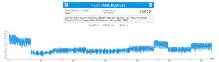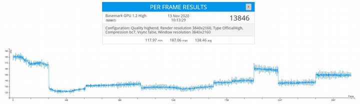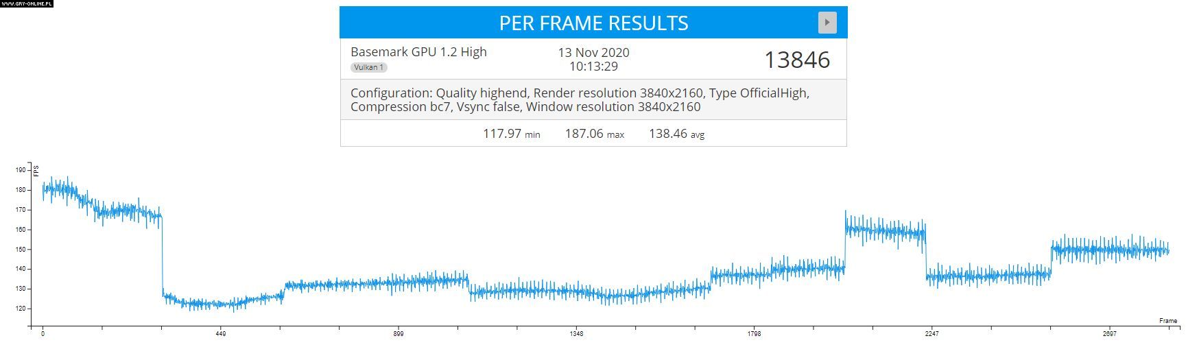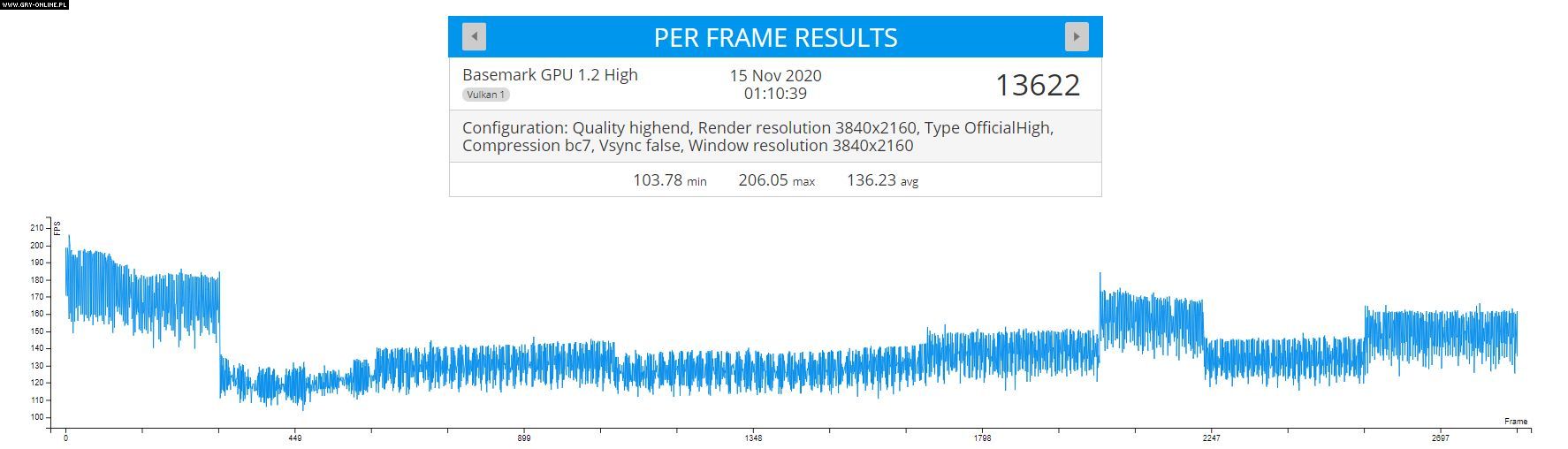 Co ciekawe, RTX 3070 poradził sobie znacznie lepiej w API OpenGL 4.5, gdzie zanotował rezultat 11354 punktów (wobec 5349 punktów Radeona) – wydaje się to dziwne i niewykluczone, że jest związane z jakimś błędem w sterownikach. Warto też odnotować, że Basemark z jakiegoś powodu zidentyfikował omawianą kartę AMD jako „Radeona z serii 6900” – dopiero dane drivera wskazują, że w rzeczywistości chodzi o model RX 6800.