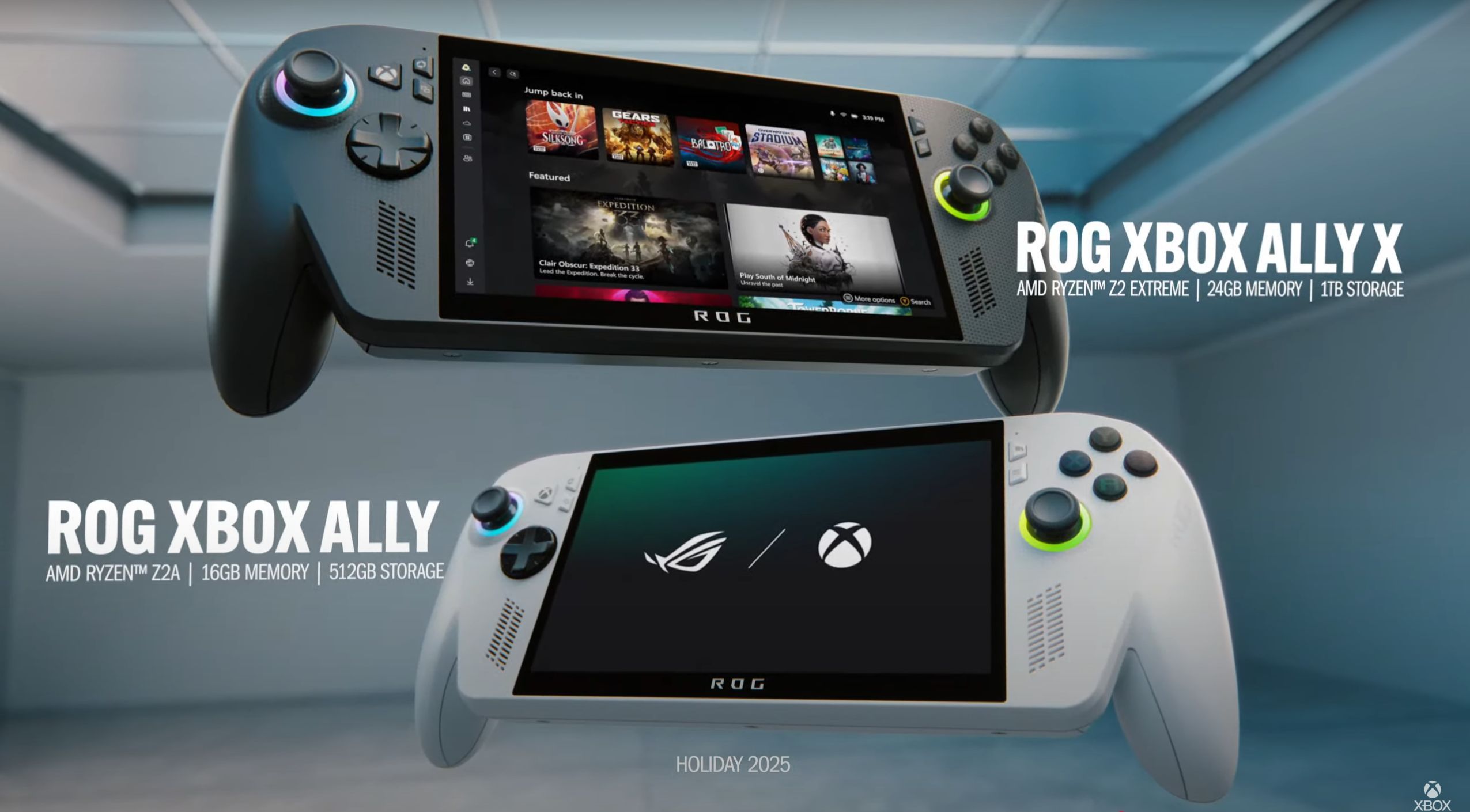 Biały ROG Xbox Ally jest przeznaczony do gier w rozdzielczości 720p, a mocniejszy ROG Xbox Ally X jest przeznaczony do grania w rozdzielczości od 900p do 1080p. Podobnie jak istniejące ROG Ally i Ally X, nowe Xbox Ally i Xbox Ally X mają ten sam 7-calowy ekran 1080p, wraz z częstotliwością odświeżania 120 Hz i obsługą VRR.