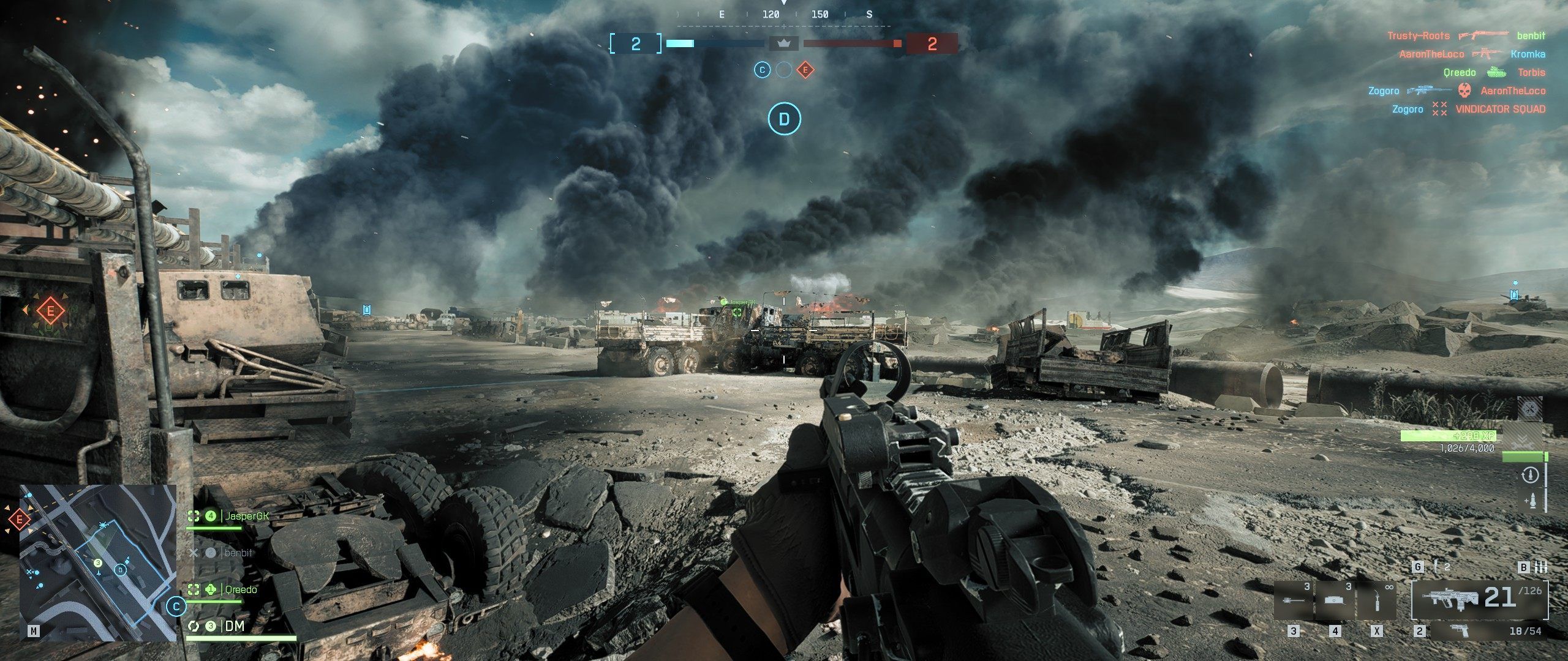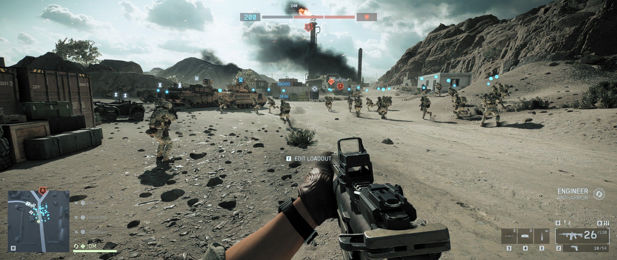 Kontrowersyjna jest natomiast wielkość stref do przejmowania. Są one naprawdę duże, a na dodatek przejęcie działa również na dachach, co w Operacji Firestorm w halach rafinerii często tworzyło momenty zabawy w chowanego, gdy jakiś pojedynczy żołnierz wroga wkroczył na sporny teren. Nadal dużo dyskusji wzbudza siła ognia pojazdów, zwłaszcza ich karabinów maszynowych, które wydają się zbyt słabe przeciw piechocie. Ponoć poprawiono parametry lotu śmigłowcem – dla mnie jednak domyślny układ sterowania na padzie jest kompletnie nieintuicyjny i musiałbym go kompletnie inaczej ustawić, na co nie było czasu podczas prezentacji. To po części wina interfejsu, który w moim odczuciu nadal jest mało przejrzysty i nieprzemyślany. Przykładowo czułość myszy na pececie zmienia się w menu sterowania, ale na PS5 czułość gałek kontrolerów znalazła się już w zakładce gameplayu… chaos, jak na polu bitwy. Plus należy się natomiast za opcje konfigurowania pojazdów, którą w tym buildzie dało się sprawdzić. Można w nich zmieniać rodzaj dostępnego uzbrojenia oraz gadżety w stylu systemu zakłócania, szybkiej autonaprawy czy też bardziej wytrzymałego pancerza.