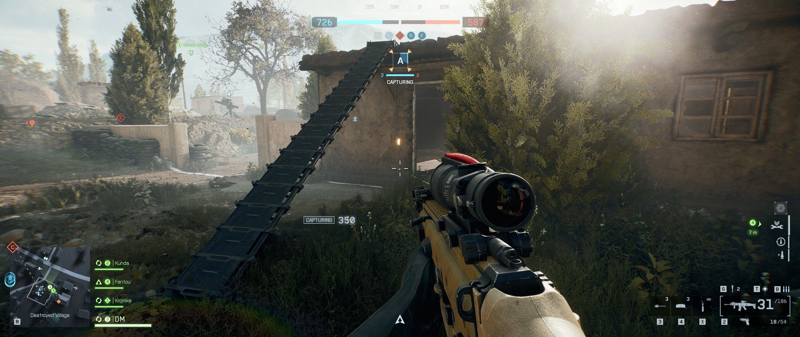 Zupełną nowością była za to drabina taktyczna dla klasy szturmowca, która okazała się całkiem przydatnym gadżetem. I to nie tylko na własny użytek, lecz ogólnie, bo drabiny zostają na mapie (o ile nikt nie skosi ich serią) i można w pewnym zakresie dostosować ich długość do wybranego miejsca. Da się je ustawić przy jakieś niskiej platformie albo na wysokość drugiego piętra. Bardzo często biegnąc gdzieś, zauważymy ustawioną przez kogoś drabinę, umożliwiającą znacznie szybsze wbiegnięcie na jakieś piętro, co nawet dawałoby powiew klimatów z Death Stranding, gdyby nie wszechobecna kanonada.