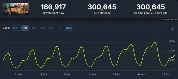 Teraz jednak tytuł osiągnął kolejny imponujący kamień milowy – wczoraj w szczytowym momencie bawiło się w nim ponad 300 tysięcy graczy jednocześnie. W momencie pisania tego tekstu Escape From Duckov przyciąga na Steamie więcej osób niż chociażby Battlefield 6.