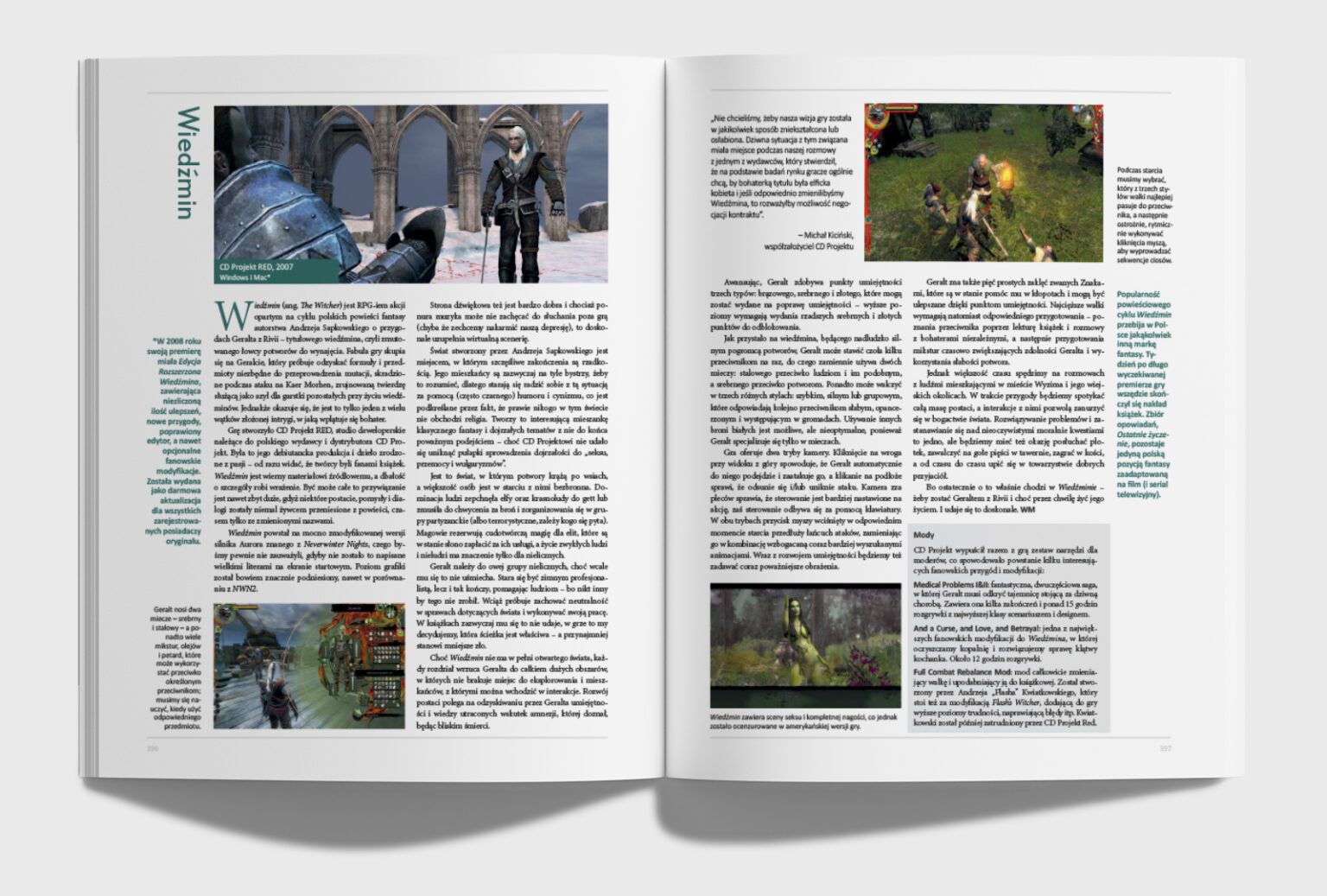 Dobrze się więc to czyta, a jeszcze milej kartkuje, bo całość jest przepięknie wydana z toną ilustracji, dodatkowych ramek czy cytatów. Jedyną wadę stanowi wspomniana waga – to książka raczej na kanapę czy stół, bo trzymanie jej w rękach na dłuższą metę po prostu męczy. Ale taka jest cena wydania blisko 700 stron na kredowym papierze, w dużym formacie i z twardą oprawą. A skoro mowa o cenie – nie jest ona mała, gdyż wynosi 180 zł, ale jakość tę kwotę moim zdaniem usprawiedliwia. Tym bardziej gdy porównamy ją z okładkową ceną broszurowego wydania nowego Wiedźmina (ponad 60 zł).