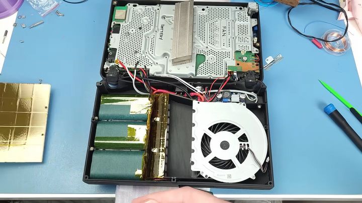 Proces modyfikacji rozpoczął od rozebrania konsoli i usunięcia zbędnych elementów, takich jak napęd optyczny, zasilacz i niepotrzebne porty. Następnie zastąpił standardowy dysk twardy znacznie mniejszym dyskiem M.2 umieszczonym w specjalnym adapterze.
