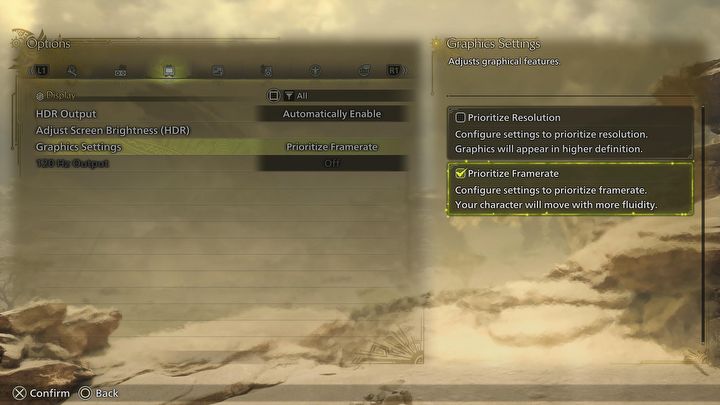 Jak możecie zobaczyć na powyższym zrzucie ekranu z gry, posiada ona w ustawieniach opcję priorytetyzowania rozdzielczości lub płynności rozgrywki. Ponadto ta druga z opcji wydaje się mieć możliwość rozszerzenia klatkarzu i płynności odświeżania obrazu do 120 Hz, ale tylko dla wyświetlaczy kompatybilnych z VRR.
