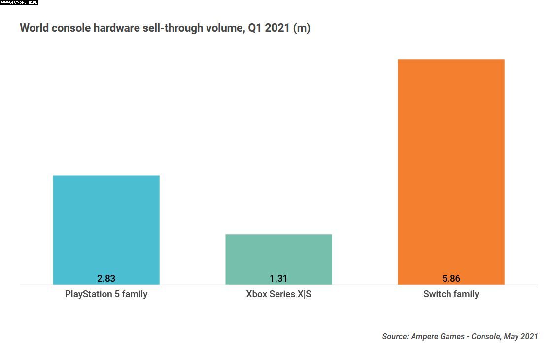 Prawdziwym zwycięzcą pierwszego kwartału bieżącego roku według danych Ampere Analysis okazało się jednak Nintendo Switch. Konsola giganta z Kioto rozeszła się w 5,86 miliona sztuk, czyli więcej niż PS5 i Xbox Series X/S razem wzięte. To także wynik o 12% lepszy, niż udało się osiągnąć tej platformie w tym samym okresie rok temu. Trzeba jednak pamiętać, że w przypadku Switcha nie ma aż tak dużych kłopotów z jego dostępnością w sprzedaży. Poza tym konsola znajduje się w sklepach już od dłuższego czasu i jak zauważają analitycy, jest ona w „szczytowym momencie” swojego cyklu. Mając te dwie rzeczy na uwadze możemy spekulować, że z czasem nowe konsole Sony i Microsoftu również zaczną osiągać zbliżone wyniki.