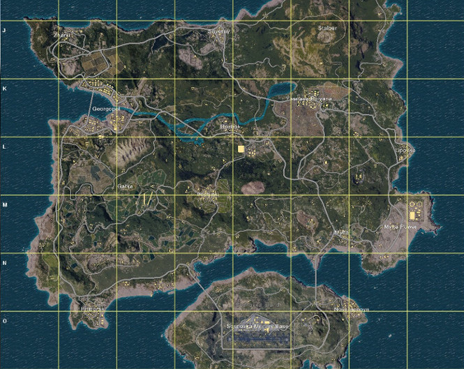 Pierwszą mapą, która została udostępniona w grze jest Erangel, czyli dwie wyspy położone na bliżej nieokreślonych terenach rosyjskich. Większa z nich upstrzona jest wioskami różnej wielkości, do których należą m.in. Pochinki, Zharki, Severny, Lipovka, Gatka, Mylta, Rozhok czy Primorsk. W delcie płynącej przez środek mapy rzeki znajduje się największe miasto w okolicy – Georgopol – a przy jej źródle umieszczony został drugi co do wielkości kompleks budynków cywilnych, czyli Yasnaya Polyana. Największy obiekt militarny stanowi baza militarna Sosnovka, zajmująca większość terenu niewielkiej wysepki na południu. Główny teren walk także zawiera kilka lokacji wojskowych, w tym kompleksy podziemnych bunkrów, strzelnicę czy krater z magazynami wojskowymi. Całkowita powierzchnia terenu to ok. 8 km kwadratowych.