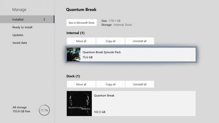 Najnowsza wersja Quantum Break na Xboksa One X trochę się rozrosła i waży ponad 102 GB. Dodając do tego opcjonalne 75,6 GB na filmiki przerywnikowe w jakości 4K, wychodzi pokaźna ilość danych.