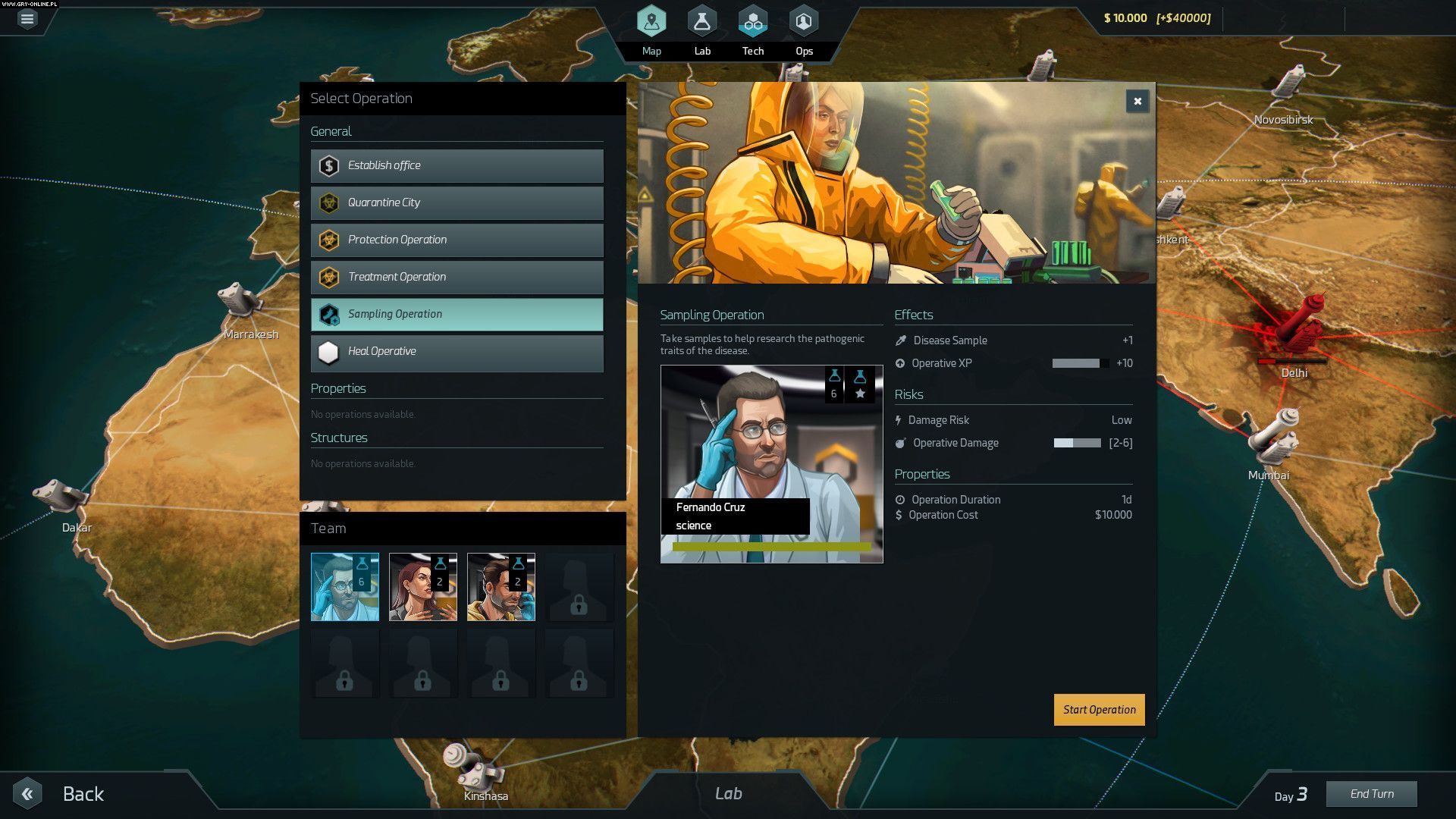 Podczas zabawy będziemy także inwestowali w ulepszanie centrum dowodzenia i sprzętu oraz stawiali przenośne bazy w miejscach pojawienia się chorób. Od naszej skuteczności zależeć mają otrzymywane przez organizację fundusze. Szczególnie istotną rolę odegra ochrona miast, a jeśli się to nie uda, to konieczne będzie opanowanie powstałego w nich chaosu.