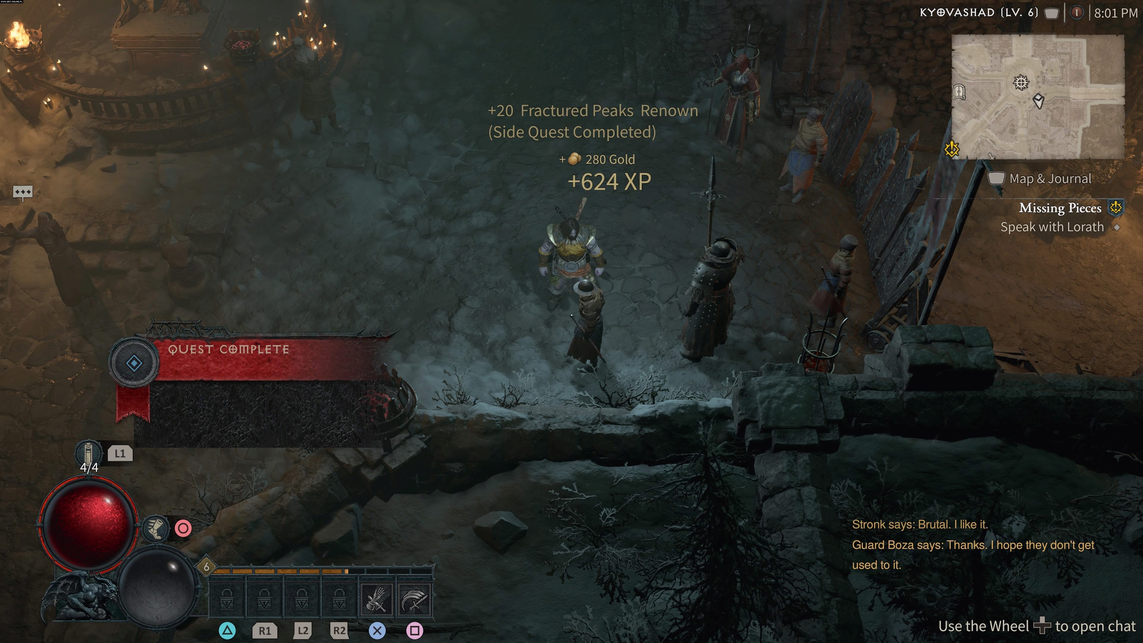 Wybranie właściwej emotki zaktualizuje quest. Możecie powrócić do strażniczki Bozy i odebrać nagrody – 280 złota, 20 punktów reputacji (Renown) i 624XP.