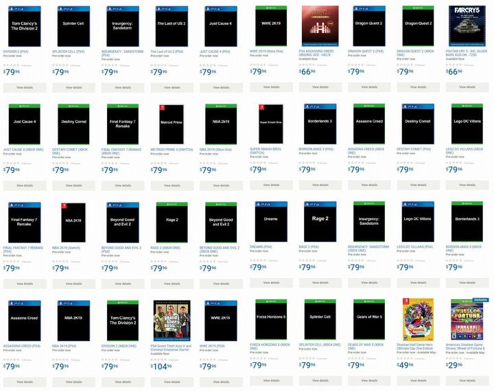 Sieć sklepów Walmart najwidoczniej szykuje się już do E3, gdyż w ofercie kanadyjskiego oddziału pojawiło się sporo niezapowiedzianych produkcji, w tym Borderlands 3, Gears of War 5, Forza Horizon 4, Rage 2, Just Cause 4 i nowy Splinter Cell.