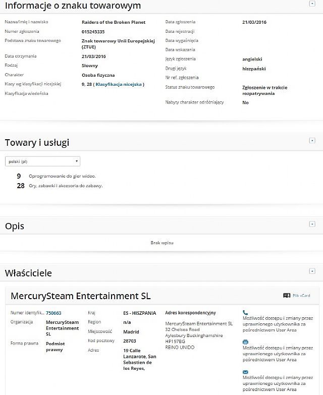 Studio MercurySteam złożyło wniosek w Urzędzie Unii Europejskiej ds. Własności Intelektualnej (EUIPO) o zarejestrowanie nazwy Raiders of the Broken Planet. Czyżby tak miała się nazywać nowa gra dewelopera?