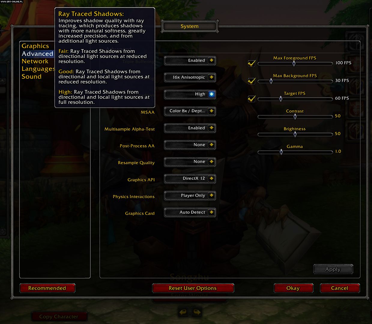 Jak widzicie, w World of Warcraft: Shadowlands cienie wygenerowane za pomocą techniki ray tracingu występują w trzech poziomach jakości – Fair, Good i High (powyższe screeny zostały zrobione z włączonym najwyższym ustawieniem). Niestety, jak donoszą gracze (via DSOG), potrafią one dość mocno obciążyć sprzęt i drastycznie wpłynąć na płynność zabawy. Na przykład GeForce RTX 2080 Ti nie jest w stanie zapewnić rozgrywki w stałych 60 klatkach przy uruchomionej opcji Good.