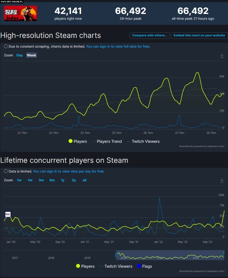 W wyniku rekordowej obniżki na Steam Autumn Sale 2022 Red Dead Redemption 2 święci triumfy na platformie firmy Valve. W produkcję Rockstara grała jednocześnie największa liczba osób od premiery.