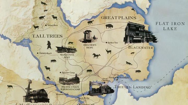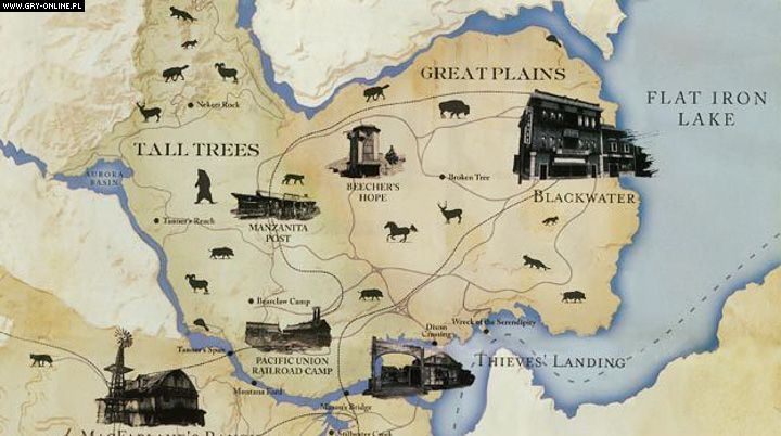 Co ciekawe, na mapie znajdujemy dwie lokacje z oryginalnego Red Dead Redemption. Znajdują się one w jej południowo-zachodnim rogu (Wielkie równiny i miasto Blackwater). TechRadar sugeruje, ze brak linii kolejowych w okolicach Blackwater oznacza, że sequel rozegra się przed wydarzeniami przedstawionymi w poprzedniej części. Przypomnijmy, że jej fabuła toczyła się na początku drugiej dekady XX wieku. Układ mapy wskazuje również jasno, że potencjalnie gracze zostaną przeniesieni w okolice centralnych oraz wschodnich Stanów Zjednoczonych, w których krajobrazie dominuje potężna rzeka Missisipi i jej rozległa bagnista delta. Obecność wielu wysp i przepraw wodnych można oznaczać, że w pewnych momentach z konia przesiądziemy się na własną łódź lub statek. Dołączony do obrazu indeks ujawnia istnienie także innych lokacji, takich jak kryjówki gangów czy obozowiska karawan.