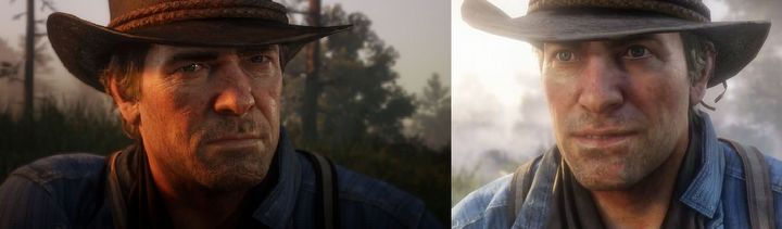 Porównanie Artura Morgana w Red Dead Redemption 2 (po lewej) oraz w drugim zwiastunie gry (po prawej). Źródło: Reddit.