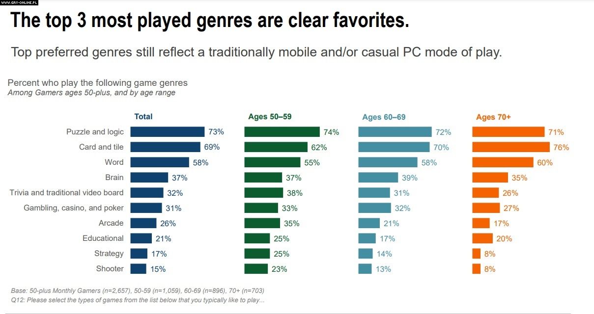 Coraz więcej osób w wieku co najmniej 50 lat spędza czas przy grach wideo. Tak wynika z ankiety 50-Plus Gamer of Today and Tomorrow, przeprowadzonej przez grupę AARP. Wzięło w niej udział prawie 8 tysięcy Amerykanów po pięćdziesiątce.